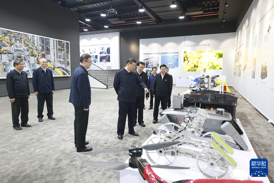 ??4月22日至24日,中共中央總書記、國家主席、中央軍委主席習近平在重慶考察。這是22日下午,習近平參觀重慶科技創新和產業發展成果展示。新華社記者 王曄 攝